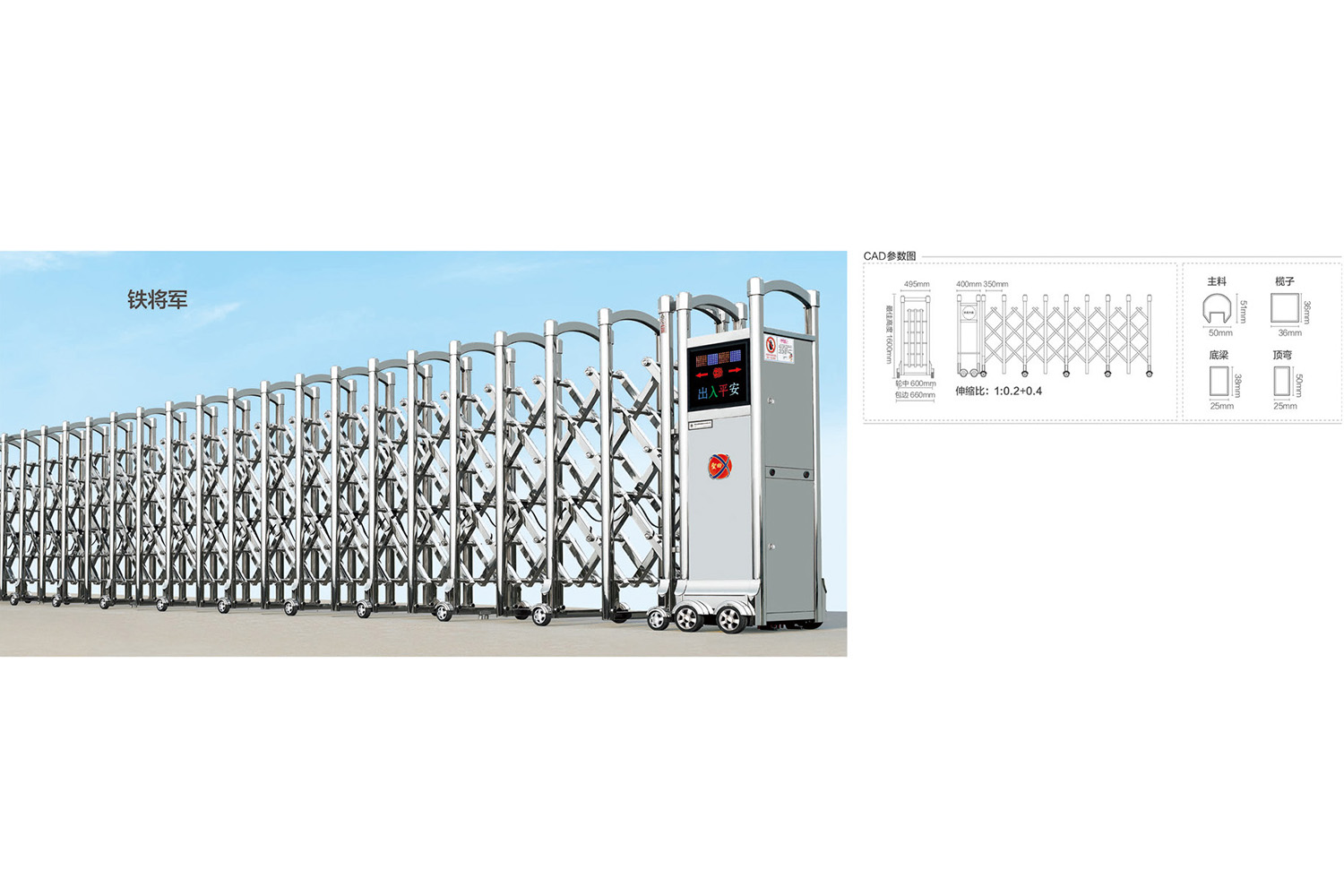 您現(xiàn)在的位置:2020不銹鋼伸縮門首頁>> 產(chǎn)品中心 > 2020不銹鋼伸縮門 > 2020不銹鋼伸縮門產(chǎn)品